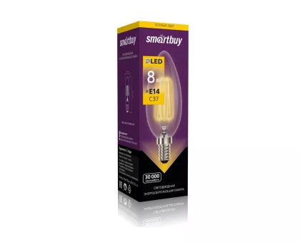 SMARTBUYВ светодиодной лампа Smartbuy С37 Filament использован совершенно иной светодиод, он выглядит как нить накаливания, от чего и получил название Filament