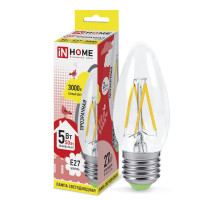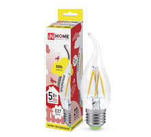 Лампа светодиодная LED-СВЕЧА-deco 5Вт 230В Е27 3000К 450Лм прозрачная IN HOME (4690612007588)